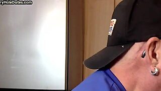 Gloryhole amateur DILF sucks cock at home in private closeup