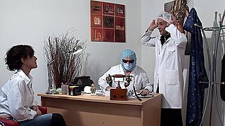 Horny chick Joyce Mifle gets drilled by two doctors in the office