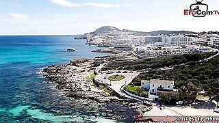 Gorgeous stepmom showing off on the beach and making dongs hard