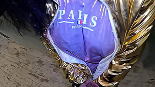 Public Risk in Taut Leather – Cameltoe, Oral job & Cum on My Downjacket Twice 235- preview