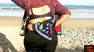Wife flashes her cleavage in the Outdoor Beach