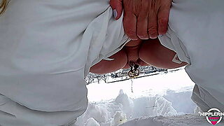 nippleringlover pissing outdoor in snow flashing huge pierced nipples and pierced pussy with stretched pussy lips