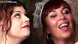 British CFNM maids jerking in threeway in hotel room