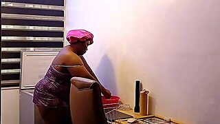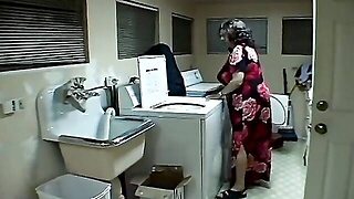 Big saggy tits mature BBW MILF housewife cleans the apartment.