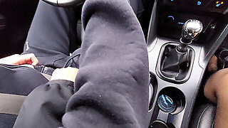 Amateur MILF gives a handjob to a taxi driver and teases him in the car, in public