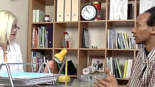Lustful ebony MILF doctor and her white client