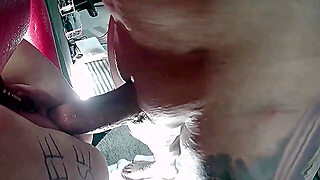 Mitch is at the glory hole and we watch as Auntie Bob pulls his dick out of his pants and goes down on it. The mature man lics and sucks Mitchs cock until theres no holding back.