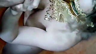 Aroused chubby granny pets her flabby snatch with vaginal beads