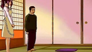 Cartoon Japanese housewife is about to get stuffed with two hard cocks at the same time