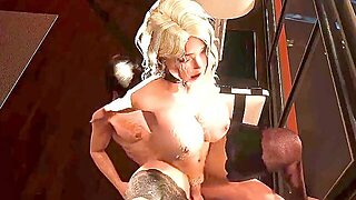 Granny Desiree Eden gives a blowjob and fucks in the kitchen.