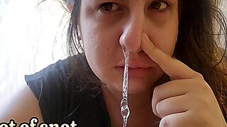 Bubbling Mucus Nose Tease: Waking Up to Sticky, Foamy Snot in My Hand – Close-Up Bubble Play