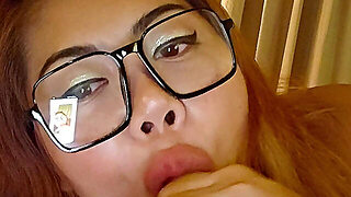 Blonde in glasses with pleasure deep throating and liking spear