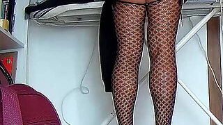 Footjob, primeira vez, meia calça, escritório