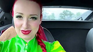 Latex, högaklackar, rödhårig, Dildo